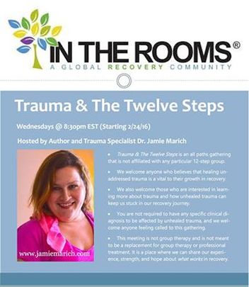 Leading professional workshops, open retreats, and counseling others with the principles I set forth in Trauma and the Twelve Steps has given me more rewards than I could ever imagine. Now, it is my great privilege to be able to bring the spirit of this work to the InTheRooms.com format for a combined show and meeting, which will begin on Wednesday, February 24, 2016 at 8:30pm EST. My hope is to reach even more people on a path of recovery and generate a safe, communal conversation around the issues of trauma recovery in 12-step circles. Here is a snippet from our opening statement: